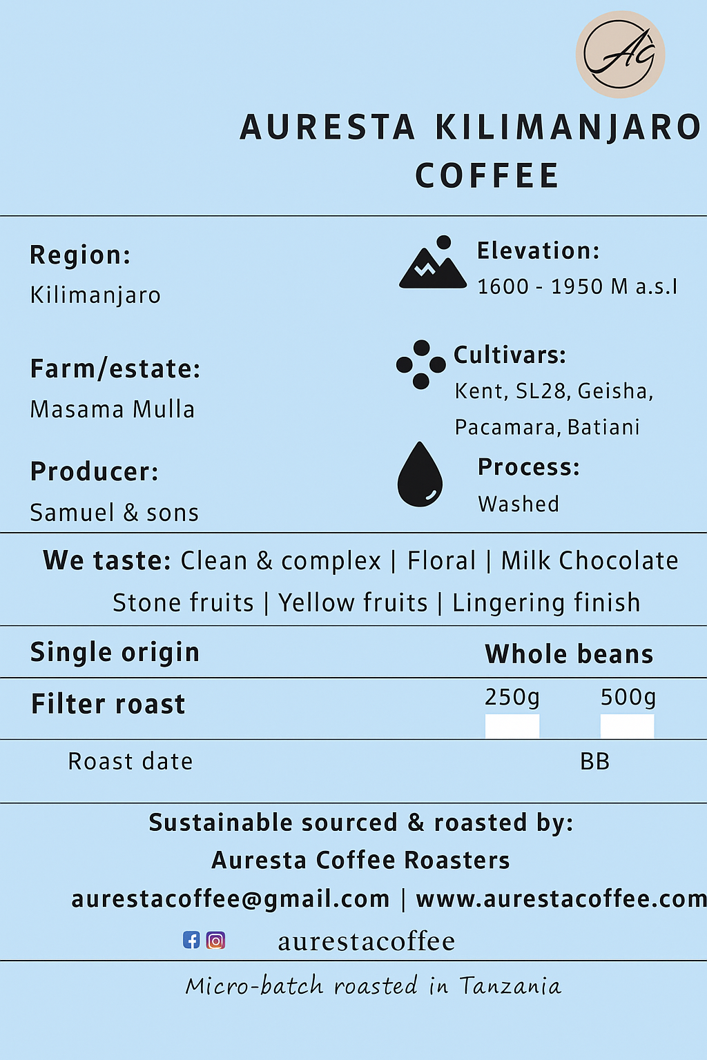 A unique coffee with a smooth, rich flavor profile and a hint of yellow fruits, muscat, with clean cup ,ethically sourced from the highlands of Tanzania.